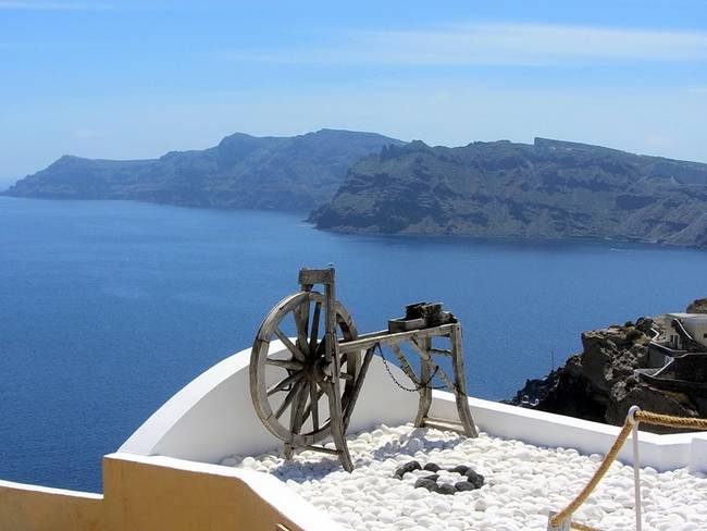"Северная столица" (этот термин, естественно, употреблён чисто условно) Санторини городок Иа (Oia) - самый живописный на острове. Недаром именно его виды, ставшие символами всего Санторини, "растащили" по открыткам, постерам и календарям: и ветряные мельницы, и знаменитые синие купола на фоне моря - это всё Иа.
