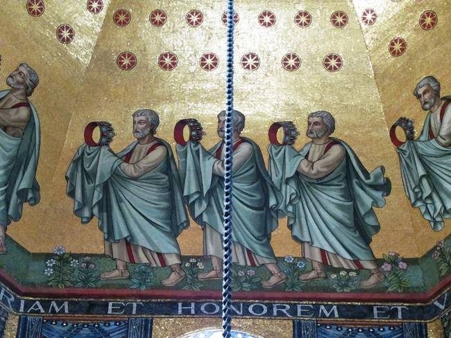 А вот "родные" потолочные мозаики до нас не сохранились. То, что мы видим сегодня, сделано уже во время реставрации конца 19 столетия.
