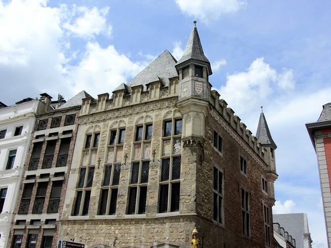 Ратуша была построена в готическом стиле в начале 14 столетия, когда Аахен получил статус "вольного города". Позже её несколько раз перестраивали, и Ратуша постепенно теряла свой первоначальный облик. А вот уже в 19 веке в результате очередных реконструкций здание вновь стало приобретать готические черты: к примеру, обращённый на Рыночную площадь (Marktplatz) фасад был украшен 50-ю статуями "под средневековье".