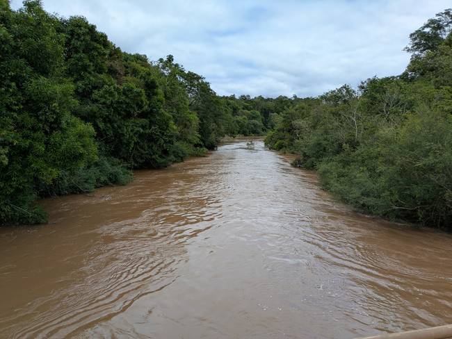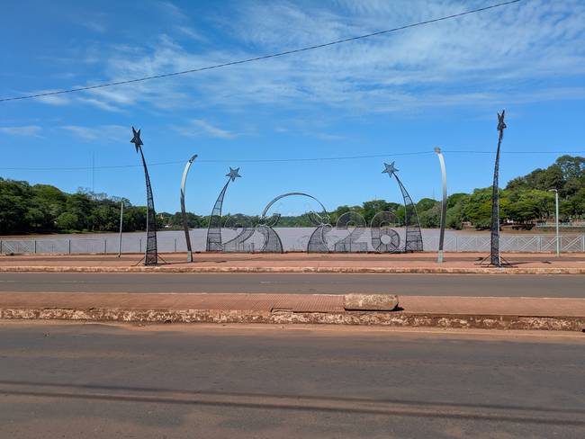 До вечера ещё далеко, можно бы было ещё куда-нибудь сходить… Но Пуэрто-Игуасу - это город одной достопримечательности, и мы её уже посетили. Впрочем, есть ещё одна, не столь значимая, но на безрыбье… В общем, это “Точка трёх границ” - место, где Игуасу вливается в Парану, а заодно стыкуются три страны. Аналогичные точки есть и с бразильской стороны, и с парагвайской, но там они платные, а тут вроде как халява. В общем, значит, нам туда дорога.