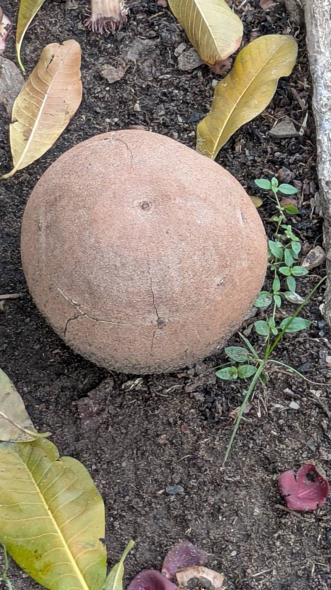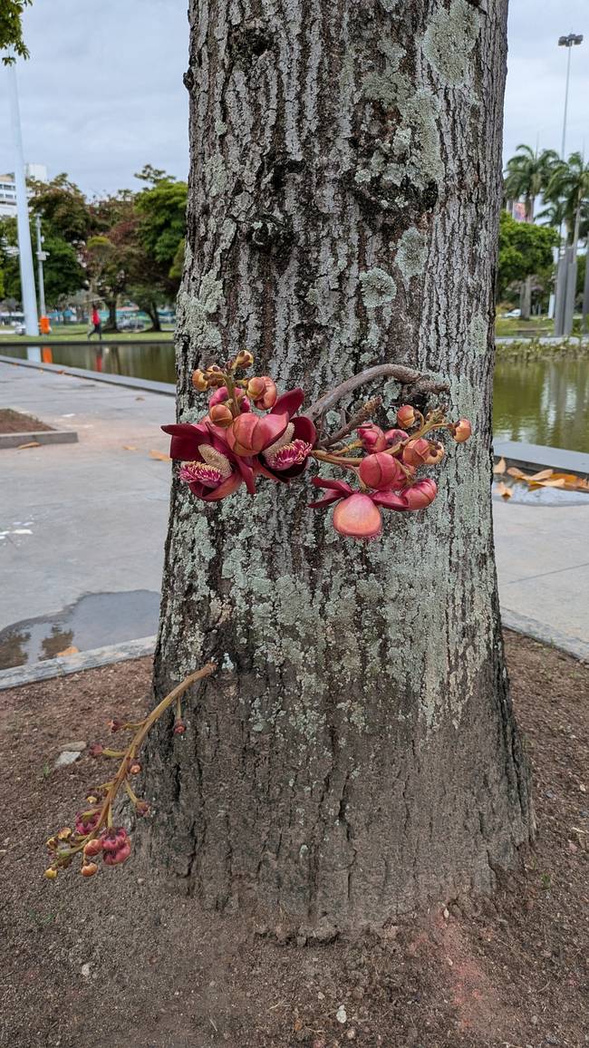 Одно из таких, поразивших нас, деревьев - пушечное. Конечно, у него есть и научное название, но оно не передаёт сути. А суть в том, что у дерева крупные, сантиметров двадцать в диаметре, круглые и твердые плоды - аккурат пушечное ядро.