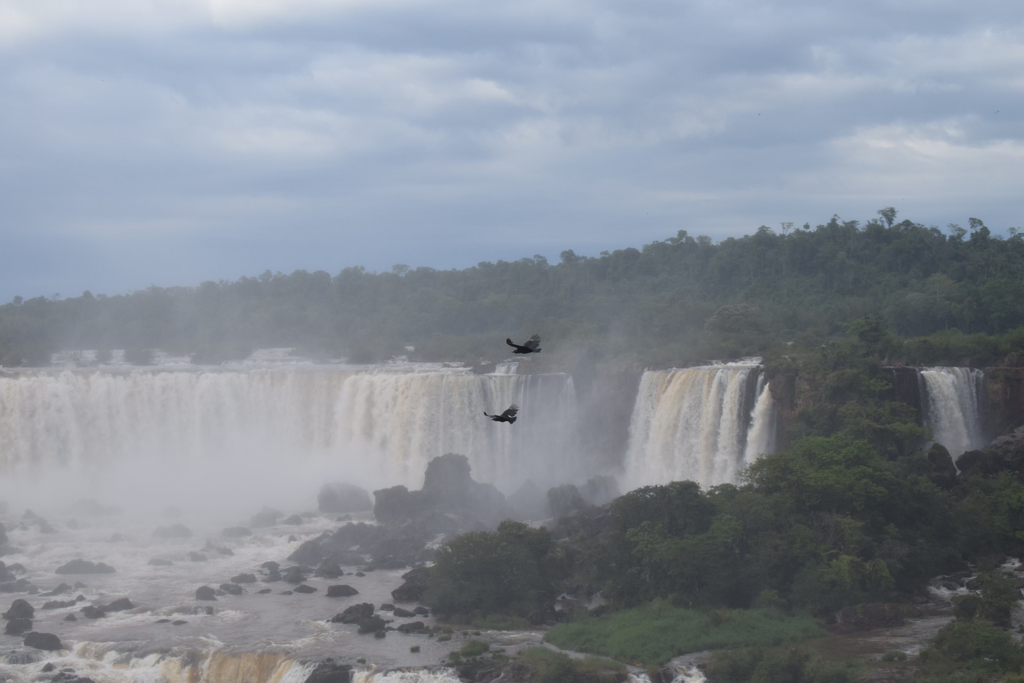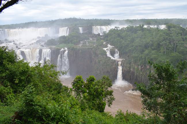 До сих пор в нашей жизни самый красивый водопад был Ниагарский. Он, безусловно, великолепен, но по размерам и по мощности он и в подмётки не годится Игуасу. Игуасу высотой 82 метра, Ниагарский - 51. Максимальный расход воды в Игуасу 12 тыс. кубометров в секунду, у Ниагары 5700. Ну и чтобы оценить величие Игуасу, добавлю, что это комплекс из 275 отдельных водопадов!