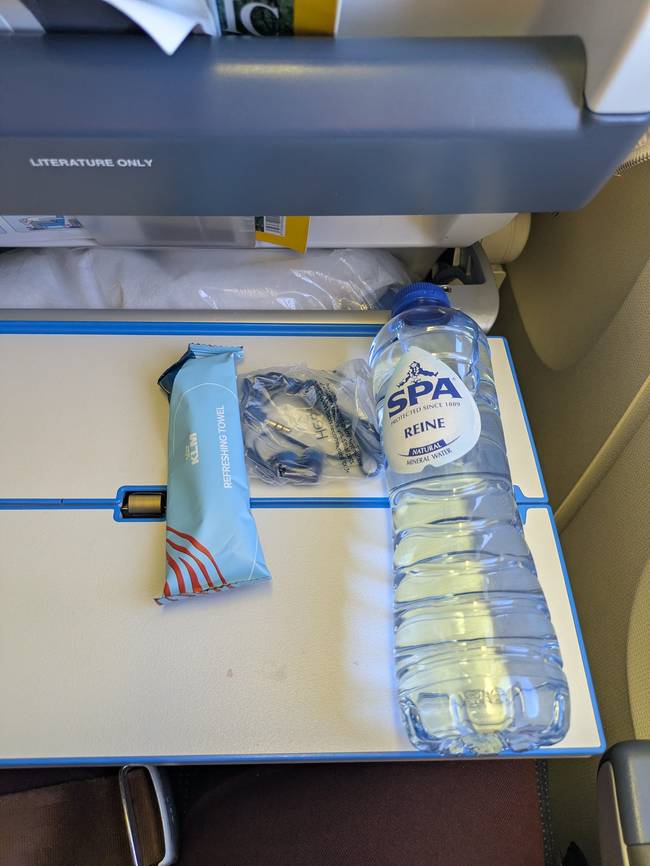 В это время стюардессы начали раздавать обеды. Я заранее в приложении заказал халяльную еду. Просто из любопытства. То, что я получил, меня сильно разочаровало. То ли они чего-то перепутали, но мой обед совершенно не содержал мяса. Может, мне дали вегетарианские блюда (такой вариант в приложении тоже можно было выбрать)? Или искать халяльное мясо показалось им затруднительным, и они пошли по лёгкому пути: просто отказались приложить мясо? В общем, самое “мясное” в наборе было - чебурек с бараньим горохом. В принципе, неплохо, но я же ожидал другого!